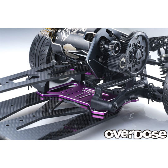 GALM 用アルミバッテリープレートの登場です。OD2877 ハイマウントキット使用時にバッテリーポジションをリヤ寄りに変更する為のプレートセットです。センターブレースマウントを排して元々モーターが搭載されていた位置までバッテリーをリヤ側に移動できます。さらに取付位置を3か所設けてあるので前後重量配分を変更することも可能です。もちろん、トランスレンジシャーシセットに使用可能です。