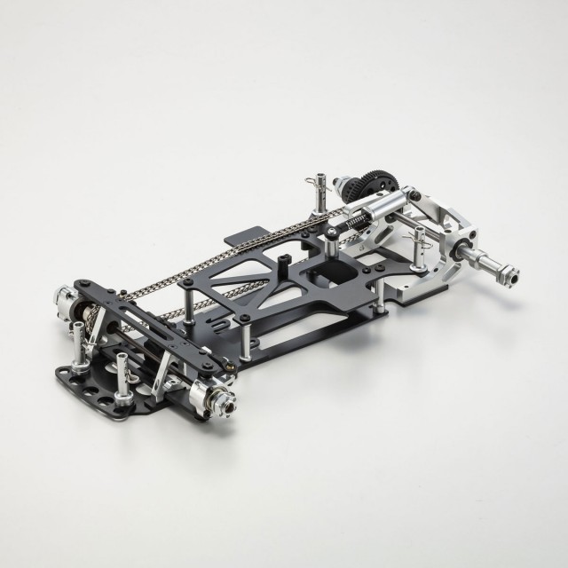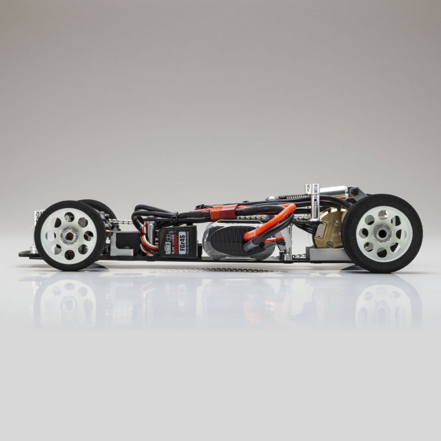 京商が1/8エンジンレーシングカーで培ったチェーン+ワンウェイ方式4WDのノウハウを、1/12電動レーシングカーに惜しみなく投入した初代。その特徴はコーナーの早い段階からパワーオンに出来るフロントワンウェイ方式の最大の利点を活かしたアグレッシブな走りが持ち味。その反面で燃費が伸びず、オフパワーでは失速しやすい特性がありました。