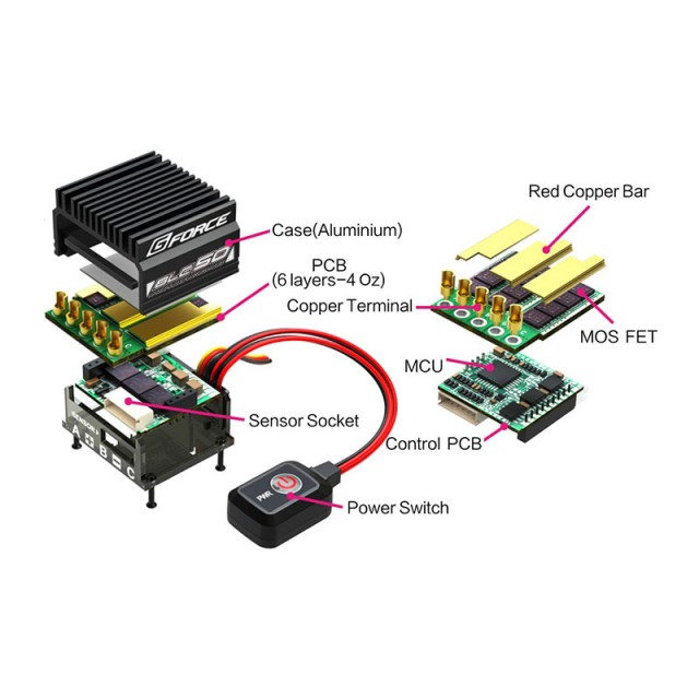 基本性能の高さと扱いやすさは先代モデル譲り。BEC出力を3Aへと大幅UPし、多くのシャーシでよりパワフルで豪快な走りを楽しめます。ブラックケーブルを採用し車載時のルックスアップにも!