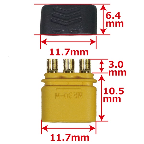 説 明:16,18,20AWGコードに対応した連続最大電流30Aのノンスパーク3連ストレートコネクターオス型です。