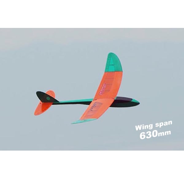 ピュアグライダーですので、土手などのスロープソアリングに最適ですが、バンジーを利用したパチンコ発航で平地で飛行を楽しむことも可能です。