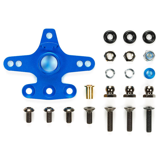 【 基本スペック 】 ブルーアルマイト加工したアルミ製サーボホーンに加え、取り付け用のビスやスペーサーなどもセット