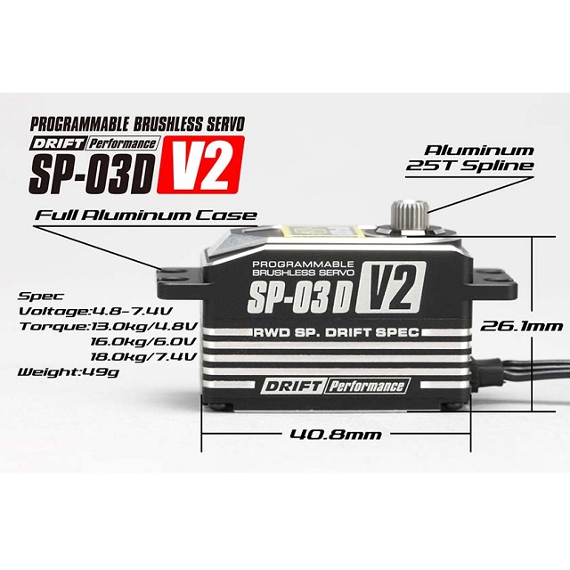 - ●ドリフト用ブラシレスサーボ SP-03DV2 ブラック [SP-03DV2A]]