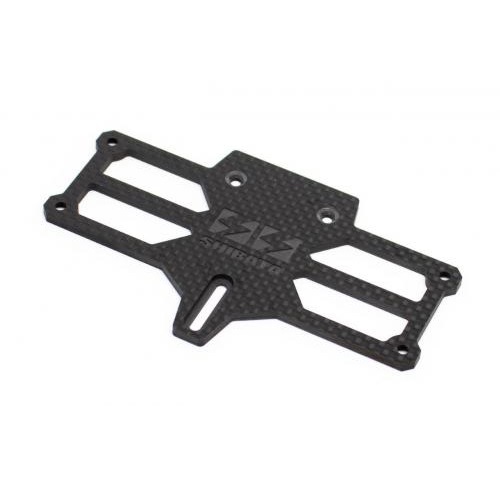 SHIBATAロゴが彫り込まれた3mm厚カーボンプレートはWeight transfer(荷重移動)を楽しんでいただけるようバッテリー搭載位置をハイマウント方式に変更。