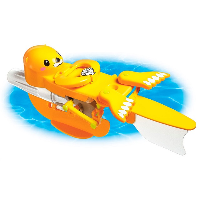 お腹の上にのせた貝をカチカチとたたきながら泳ぐ、かわいいラッコの工作セットです。背中につけた水中モーターの回転をギヤボックスでスピードダウン。シッポを左右に振ってゆったり泳ぎます。また、本物のラッコそっくりに腕を上下させて貝をたたく動きはカム機構、しっぽに合わせて足をゆらゆらと振る動きはリンク機構を使って表現。実際に組み立てて動かすことで、モーターの回転運動が往復運動に変わるしくみがよく分かります。さらに、シッポの角度を調整して右回り・左回りにぐるっと旋回もOK。シッポや足などは押し込むだけで固定できる「プッシュリベット」を使っていて、ビス止め作業はほんの少しなので、はじめて工作シリーズにトライするお子さんにもぴったりです。そして、かわいらしさを引き立てる目や鼻、貝などの耐水ステッカーもセット。元気いっぱいに水面を泳ぐ、愛きょうたっぷりの姿に夢中になることうけあいです。