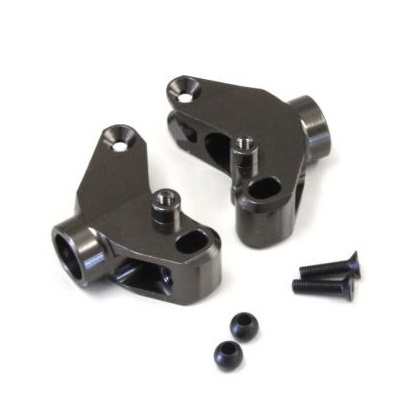 ノーマルのプラスチック製ではハードヒットによる破損が避けられないパーツをアルミブロックを精度の高いCNC加工により贅沢に削りだしする事で耐衝撃強度を大幅にアップしかつより正確なサスペンションの動作を実現する。仕上げはガンメタリック色のアルマイト処理が施され質感もアップ。