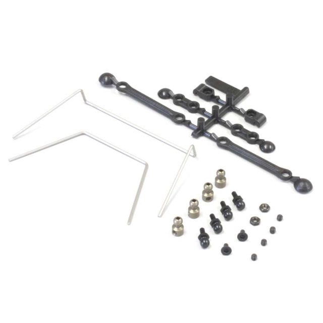 ロールを押さえてハイグリップ路面に対応する前後スタビライザーセット。 フロントには線形1.5mmのピアノ線、リアには1.6mmのピアノ線が採用されハイグリップ路面で効果を発揮します。