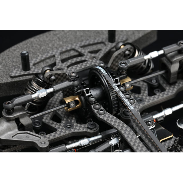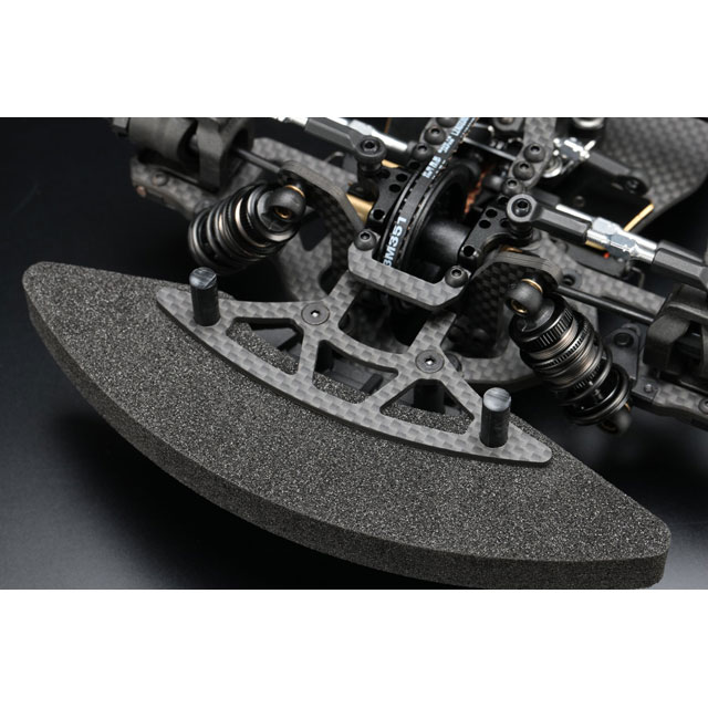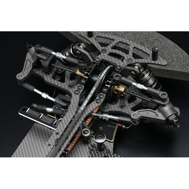 カーボンパーツのバンパーブレースやフロントステフナープレート、バッテリーホルダーにて軽量化と剛性のバランスを向上させ、アルミ製のジョイントカップで駆動系をファインチューン、さらにアルミ製ショックキャップボールでサス作動の質を高めています。また、スタビライザーは現在チームドライバーが主に使用している1.3mmに変更し、最新のセッティングを実現できます。