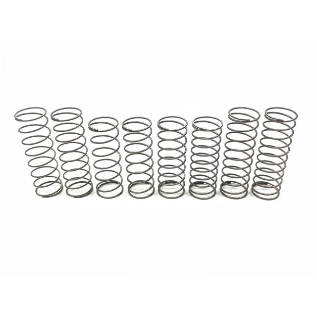■荷重を乗せやすくするためにスプリングの線径は0.9mm と 1.0mm の 2 種類とし、シャーシの重量やダンパー取付位置(レバー比)を内側や外側に合わせやすくするために自由長を 45mm と 50mm の 2 種類、ロール量の調整用にスプリングの総巻き数を 7.5 11.5 まで幅広くラインアップいたしました。