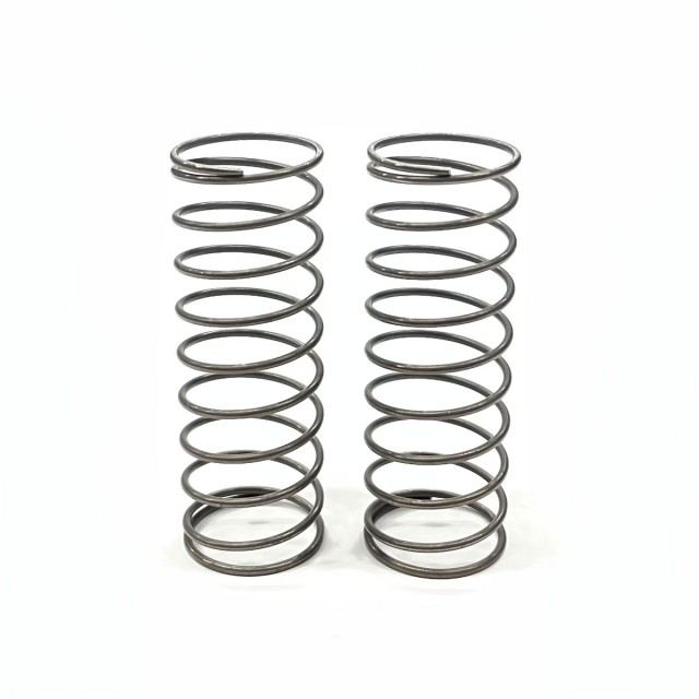 ■荷重を乗せやすくするためにスプリングの線径は0.9mm と 1.0mm の 2 種類とし、シャーシの重量やダンパー取付位置(レバー比)を内側や外側に合わせやすくするために自由長を 45mm と 50mm の 2 種類、ロール量の調整用にスプリングの総巻き数を 7.5 11.5 まで幅広くラインアップいたしました。