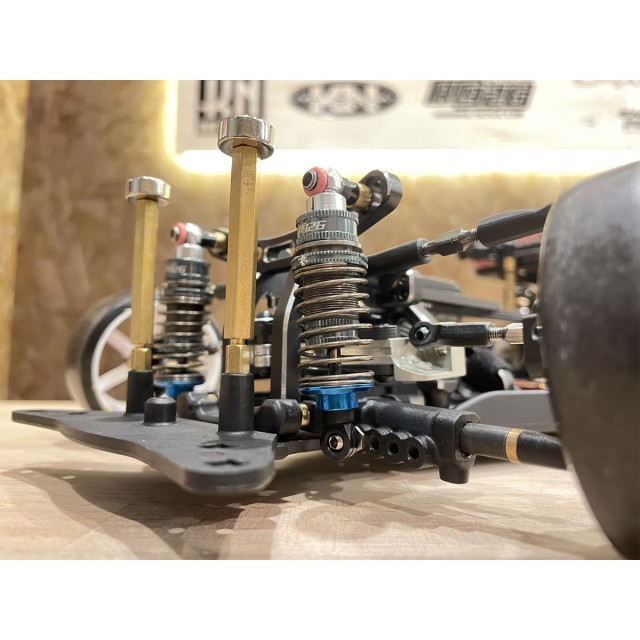 ※補足 ローリングスペシャルスプリングを装着しただけではイメージしているようなロールはしません。各部の動きの渋さを取り除き、シャーシを押して抵抗のないスムーズな足回りを作り、シャーシ側各部や ESCなどのデバイスの調整を繰り返して楽しく走れるようになるまでセッティングしていきましょう。上記プラスでバッテリーや ESC などをハイマウント化することでロールさせやすくなります。