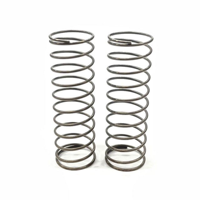 ■荷重を乗せやすくするためにスプリングの線径は0.9mm と 1.0mm の 2 種類とし、シャーシの重量やダンパー取付位置(レバー比)を内側や外側に合わせやすくするために自由長を 45mm と 50mm の 2 種類、ロール量の調整用にスプリングの総巻き数を 7.5 11.5 まで幅広くラインアップいたしました。
