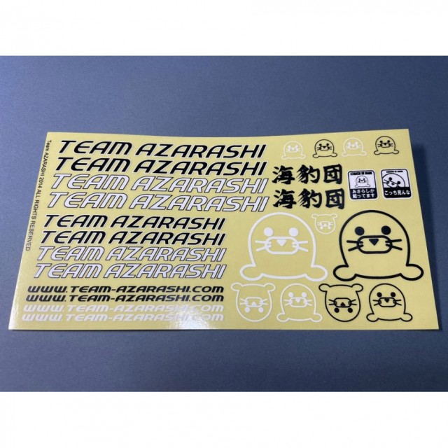 専用リヤウイング(ストレート形状・ラウンド形状各一枚)、チームあざらしステッカーが付属します。