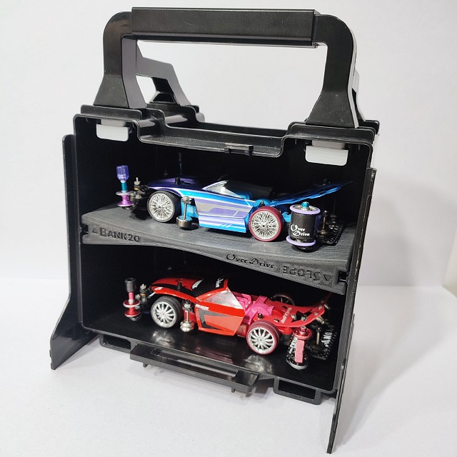 ※3台持ち運びたい方は「ミニ四駆 ポータブルピット用 3台収納 バンク・スロープ・棚受けセット」がオススメです。