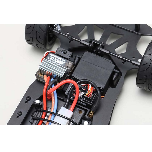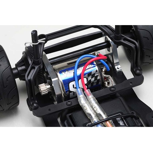 送受信機、サーボ、スピードコントローラー、モーターを搭載した組み立て済みセットで、手間のかかるボディを塗装済みとし、タイヤも接着済みで取り付けてあります。
