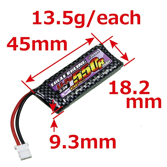 Li-FeバッテリーEA550R 15C+α GRTチューブ仕様 [EG-3698U2]] メーカー イーグル模型 品番 EG-3698U2 商品名 Li-FeバッテリーEA550R 15C+α GRTチューブ仕様 [EG-3698U2]] 定価(税込) ¥ 2,618 特価(税込) ¥ 2,226 送料区分 送料小① 送料小① 基本配送料:680円 1個口に何点含まれていても「送料小 680円」 利用規約(送料説明)の表示 ※詳しい送料説明 オンラインショップの在庫状況 オンラインショップ 在庫わずか 店舗別の在庫状況 大阪日本橋店 在庫切れ 東京秋葉原店 在庫わずか 福岡博多店 在庫切れ 【有料】ラッピングサービス ラッピングサービスを希望される場合は、商品と一緒に対応するサイズのラッピングサービスをカートに入れてご注文ください。 ラッピングをご希望の方はこちら 数量 個 この商品へのお問い合わせ 京商ミニッツシリーズ用550mAh 3.3V Li-Feバッテリーです。クラス最高の容量・出力を実現しました!スピード・ランタイム共に大幅にアップします。直列に接続して6.6Vバッテリーとして使用します。車への搭載には、専用コネクター#3698-W1が必要です。 サイズ:約45.5×19.0×9.2mm 重量:一個あたり約13.8g この商品を買った人はこんな商品も買っています ページ:0 / 0 Mini-Z・Li-Feバッテリー配線コネクター [EG-3698-W1] イーグル模型 ¥ 248 在庫切れ ハイグリップタイヤ(ソフト30゜) [MZW2-30] 京商 ¥ 413 在庫あり ミニッツ ローハイトスリックタイヤ(30°/4入) [MZW39-30] 京商 ¥ 495 在庫あり ミニッツ レーシングラジアル ワイドタイヤ 20° [MZW38-20] 京商 ¥ 578 在庫わずか Mini-Z・Li-Feバッテリー用バランスチャージコネクター [EG-3698-W2] イーグル模型 ¥ 377 在庫わずか CW-01アルミモーターマウント [OP-2027]] タミヤ ¥ 1,309 在庫わずか 3×16mmスチール六角丸ビス(10本) [SP-1632]] タミヤ ¥ 154 在庫あり 3×16mmスチール六角皿ビス(10本) [SP-1633]] タミヤ ¥ 154 在庫あり ステンレス皿ビスセット(6・8・15mm) [15527]] タミヤ ¥ 247 在庫あり 850 ラバーシールベアリング(2個) [42368]] タミヤ ¥ 616 在庫あり MC-8 2.4GHz MX-F キーエクスパンションEXP-801付きセット [KO-10716]] KO PROPO ¥ 10,560 在庫切れ 1150 ラバーシールベアリング(2個) [42377]] タミヤ ¥ 693 在庫あり スーパーローハイトスリックタイヤ(20°/4入) [MZW40-20]] 京商 ¥ 578 在庫あり アルミナックル ブラック(タミヤCW-01 ランチボックス) [SCW-35BK]] スクエア ¥ 3,344 在庫わずか 70-75ジュラルミンヘックスボタンビス 3×15(オレンジ) 4本入 [NAR-315OR]] スクエア ¥ 282 在庫あり 3×12mmスチール六角皿ビス(10本) [SP-1631]] タミヤ ¥ 154 在庫あり 3×12mmスチール六角丸ビス(10本) [SP-1630]] タミヤ ¥ 154 在庫あり 70-75ジュラルミンヘックスボタンビス 3×16(オレンジ) 4本入 [NAR-316OR]] スクエア ¥ 282 在庫あり 70-75ジュラルミンヘックスボタンビス 3×18(オレンジ) 4本入 [NAR-318OR]] スクエア ¥ 282 在庫あり 70-75ジュラルミンヘックスボタンビス 3×20(オレンジ) 4本入 [NAR-320OR]] スクエア ¥ 282 在庫あり
