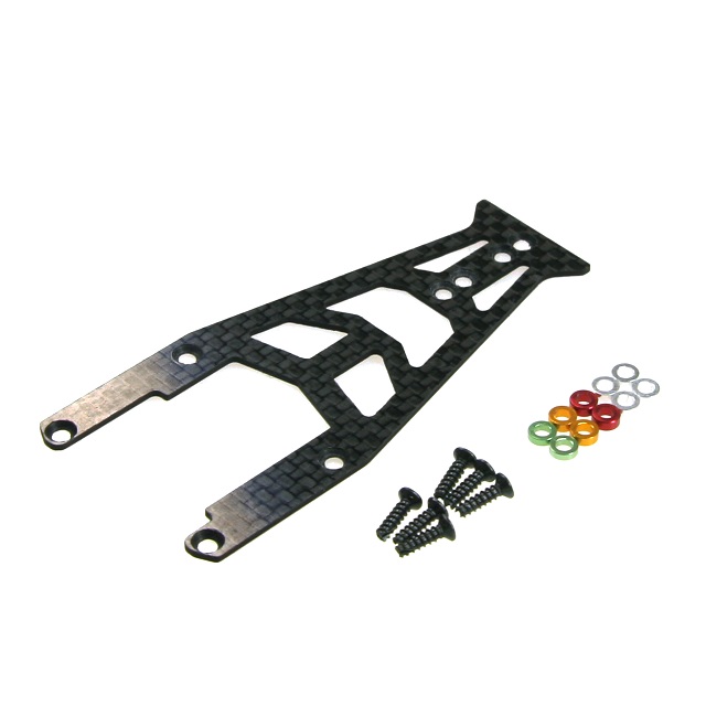 シャーシ前部と中間部をグラファイトプレートでつなぐ事で、シャーシ剛性を高めます。