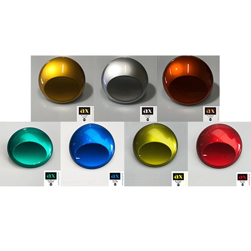 従来のゴールド等カラーメタリックはシルバーメタリックにブラウン系の原色を混ぜる等の調色カラーの為、濁りや分離等の症状をどうしても避ける事が出来ませんでした。しかしaxは顔料自体に特殊な表面加工(色褪せ防止加工)を施しているので、見事なまでの輝かしい効果を発揮し、より美しいスタイリングを可能にしました。