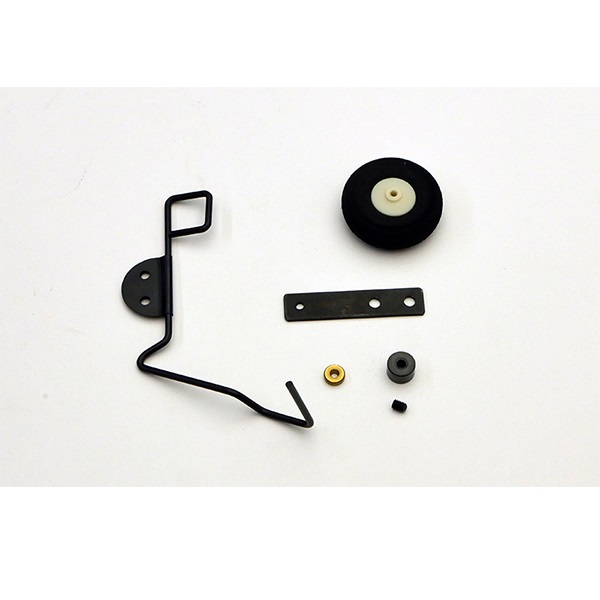 2車輪式の中小型機の尾輪に使用するシンプルなピアノ線製の尾輪支柱と軽量スポンジタイヤのセットです。