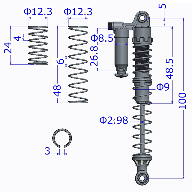 注意:ショックオイル別売 お好みの粘度のものをお選び下さい。
