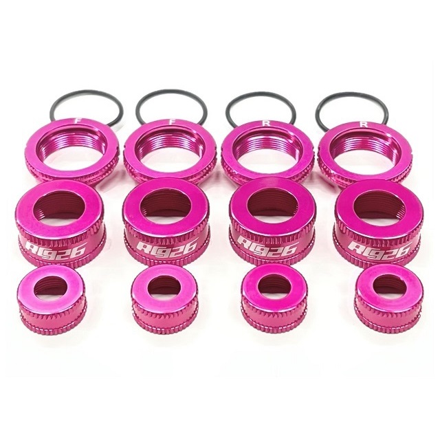 ■ダンパーカラーチェンジキットは、キャップナット、キャップエンド、アジャストナット、アジャストナット用Oリングが各4個入りの1台分のキットです。