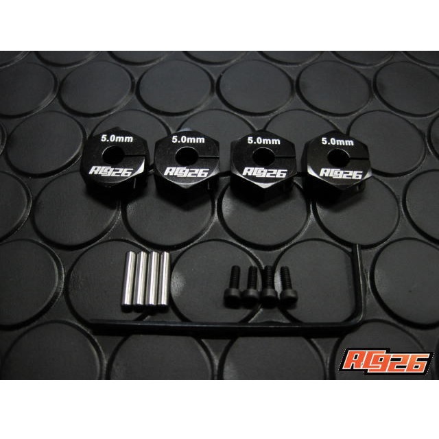 ※使用するシャーシのステアリングブロックやリアハブキャリア、ユニバーサルシャフトなどの組み合わせによって、アルミクランプ式ホイールハブを使用した場合にガタが出て気になる場合は、内径5mmの薄いシムなどを使用して、適度なガタ取りの調整を行ってください。
