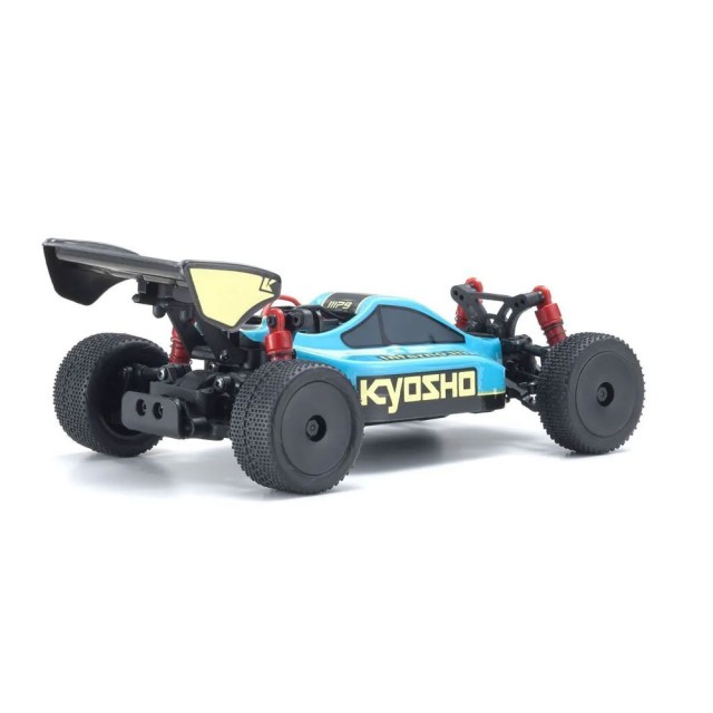 また、左右振り分け基板には、直進安定性の向上と旋回時の姿勢の乱れを抑制するオプションのジャイロユニットセット(別売)が手動で調整できるボリュームを標準装備。付属するプリントボディは、ミニッツバギーシリーズでもナンバーワンの人気を誇るインファーノMP9でホットな走りを連想させる新規カラーを採用するとともに、ホイールもブラックにすることでより精悍なルックスを手に入れました。