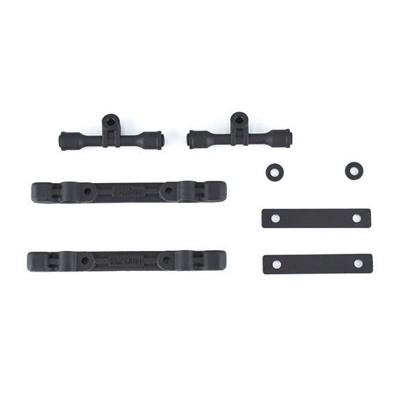セットにはリアサスマウント(61.2mm)、リアサスマウント(62.0mm)、リアサスマウントサポート(2個)、1mm厚スペーサー(丸型、角型、各2個)が含まれます。