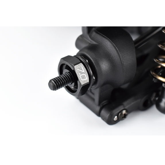 キット標準装備の樹脂製リアハブと比較して、素材にアルミを使用する事でより精度が上がり、RDXに採用するΦ6.0mmアクスルと合わせることで芯ブレを効果的に抑制してスムーズな回転を実現します。