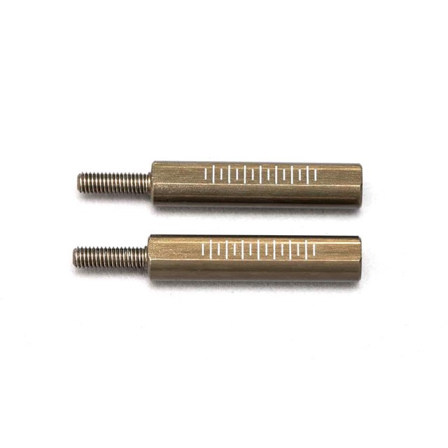 ロアアームに使われているスチール製のアダプターに比べて軽量で、運動性能の向上に効果があります。キット標準のアダプターよりも長いサイズで、アルミ製ロアAアームとの相性抜群です。樹脂製アームと併用する場合はアーム長が長くなりますので、ワイドトレッドとなります。