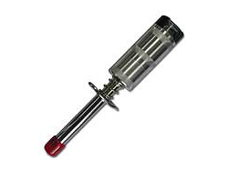 バッテリーメーター付きで、プラグの通電状態が一目で確認できます。幅広のグリップレバーでつかみやすく、不用意に転がるのを防ぎます。