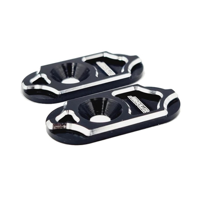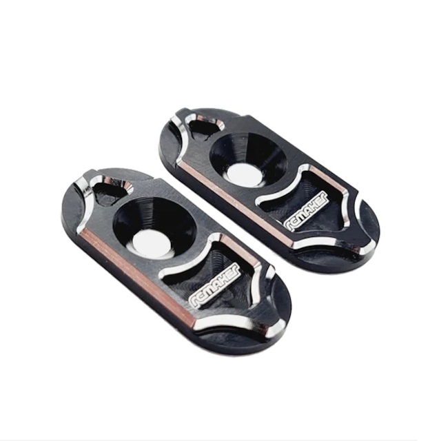 スイス製CNCフライス盤で加工され、ブラックアルマイトにシルバーの面取りとRC MAKERのロゴがレーザー刻印されています。