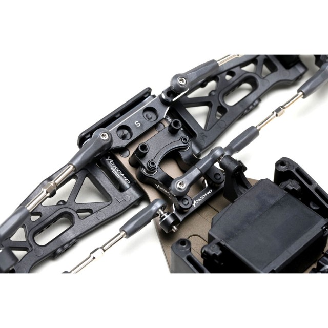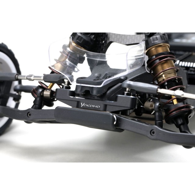 カーペットや人工芝などのハイグリップ路面では、専用スプリングとスタビライザーがコーナーでのロールを防ぎ、クイックな切り返しを実現します。また、チームドライバーおススメのアルミ製ステアリングベルクランクがフロントの接地感を高め、シャープなハンドリングを実現します。ロングホイールベースの安定感もドライバーの負担を軽減します。