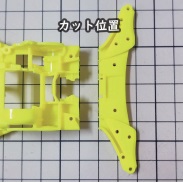 ・いつも同じ場所でカットすることでシャーシ交換時にギミックの交換が簡単になります。