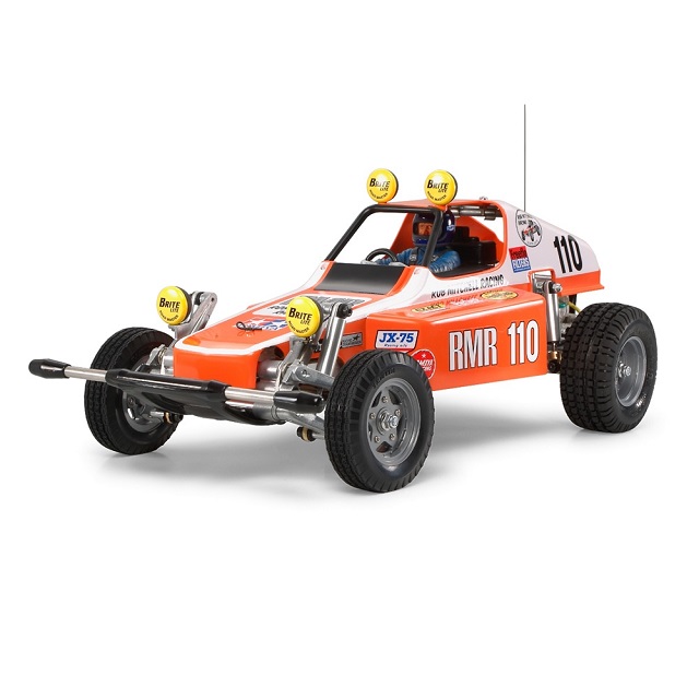1979年に登場して電動RCバギーというジャンルを確立し、世界的な人気を集めたバギーチャンプが帰ってきました。高い走行性能とハイクオリティを誇った当時の基本構成を変えることなく、復刻版では各部の強度を高めるなど現在の走行条件を満たすために、多くの金型を新しく作り直して完全再現しています。もちろん、RCメカや走行用バッテリーを収めたクリヤーパーツのメカボックスも装備。前後のタイヤもトレッドパターンまでオリジナルそのまま。また、ボディはホワイトパーツですので、お好みのカラーに仕上げやすくなっています。道なき荒野を縦横無尽に駆け抜けるシーンに思いをはせていた、あの頃の熱い想いを再燃させるマシンの復活です。