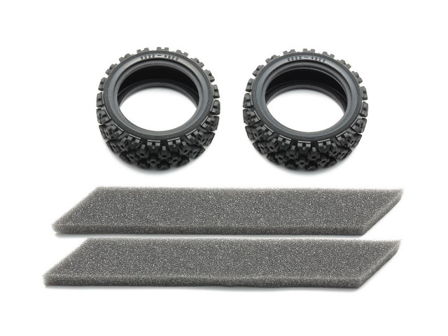 【 基本スペック 】 ソフトコンパウンドを採用したラリーブロックタイヤとインナースポンジをそれぞれ2本ずつセット