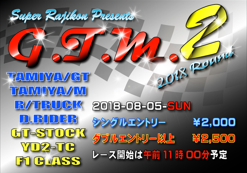 - ①タミチャレGTクラス ②タミチャレ Mクラス ③ヨコモ GTストッククラス ④ヨコモ YD-2 スケールクラス ⑤F1クラス ⑥タミヤ レーシングトラッククラス ⑦タミヤ ダンシングライダー