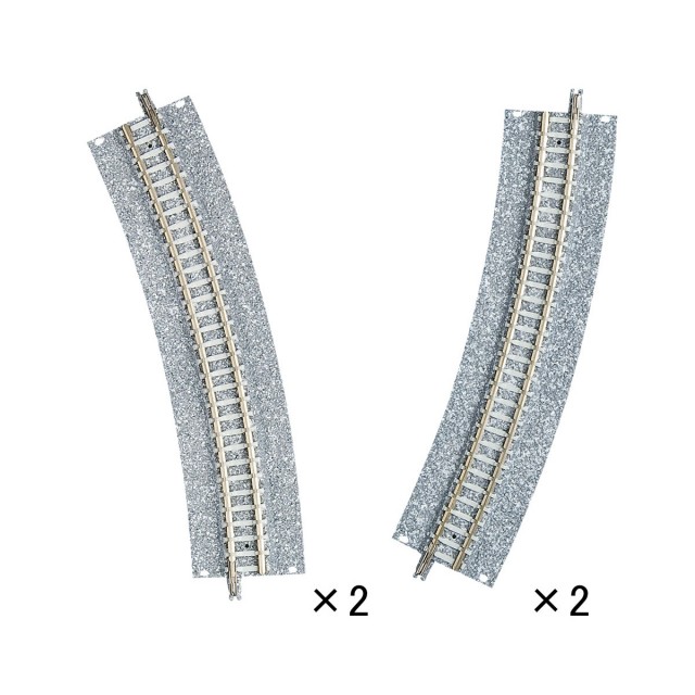 ●右にカーブしながら徐々にカント傾斜するCRと、左にカーブしながら徐々にカント傾斜するCLの各2本1組