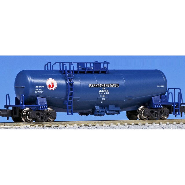 輸送効率向上のためフレームレス構造や異径胴のタンク体を採用して容積を極限まで拡大し、43tの荷重を実現しています。外部塗色は識別のためにガソリン専用タンク車としては異例の青15号(濃青色)とされました。昭和49年(1974)のタンク車構造基準改訂を受け、製作が中断されますが、設計変更のうえ昭和57年(1982)に際作を再開し、以後種々の設計変更を重ね総数819両にもおよびます。