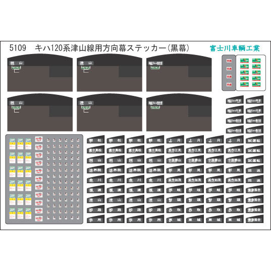 - 方向幕・表記ステッカー キハ120 津山線用(黒幕) [5109]]