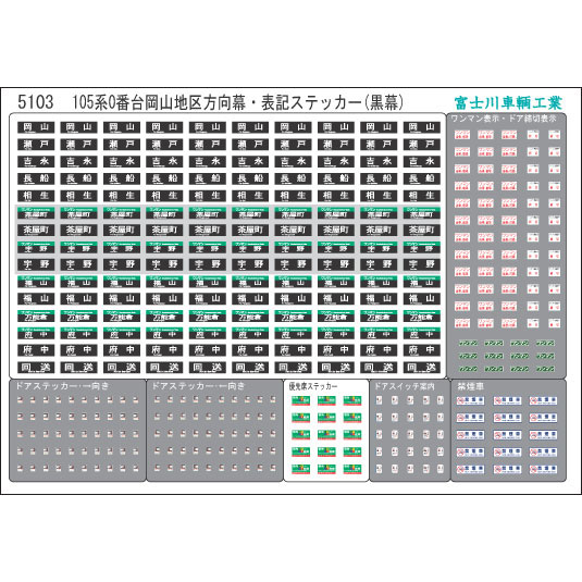 - 方向幕・表記ステッカー 105系0番台岡山地区(黒幕) [5103]]