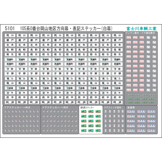 - 方向幕・表記ステッカー 105系0番台岡山地区(白幕) [5101]]