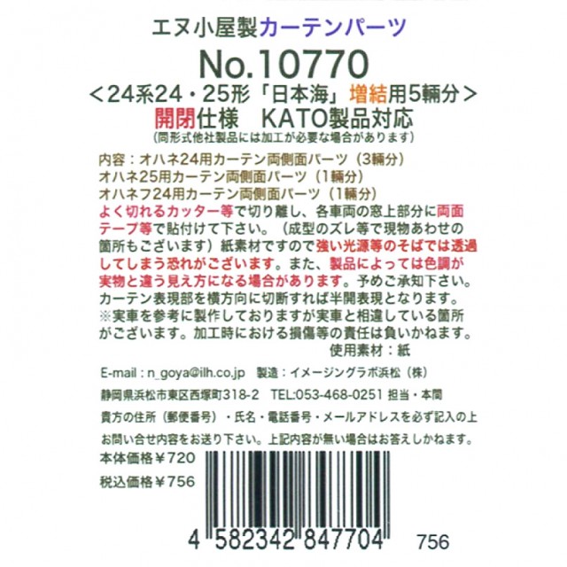 - カーテンパーツ <24系24・25形 「日本海」 増結用5輛分> 開閉仕様(KATO製品対応) [10770]]