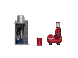 ちょっと昔のローカルな駅構内で見かけられた「ガソリン計量器・給水機・ドラム缶」のセットです。Nスケール・ホワイトメタル製塗装済完成品