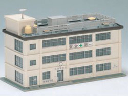 もちろん接着剤不要のイージーキット方式ですので、どなたにも簡単に組み立てられます。昭和40年代前後の標準的な鉄筋コンクリートのビルという感じですので、カラーリングや看板などを変えるだけで、オフィスビルや学校の校舎、病院、工場など、さまざまな建物にも応用できるでしょう。