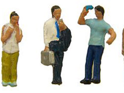 在来の鉄道シーン向きの「Nゲージ人形」とは異なり、街中の「日本的な生活観のある」人々を中心にモデル化しました。あなたの街にもこれらの「新しい住人達」をぜひ加えてください。