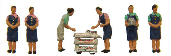 ● (N)人形 アテンダント(寝台特急:乗務)・・・寝台特急の乗務員をまとめた6体+ワゴン