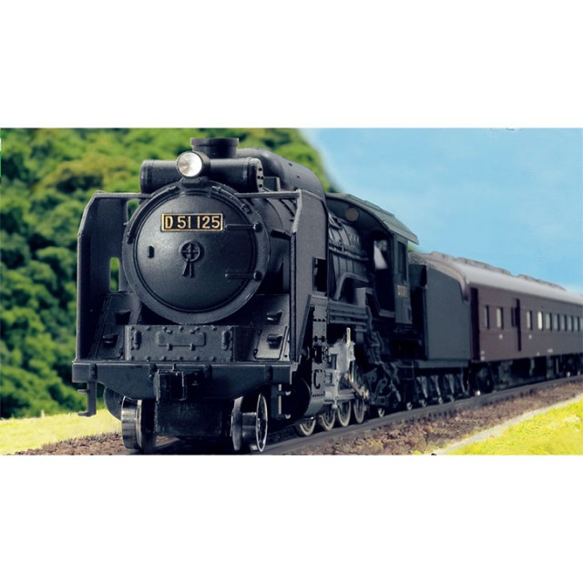 ● 人気の高い蒸気機関車D51「デゴイチ」とレトロ客車3両をフィーチャーした、懐かしいSL列車でNゲージ鉄道模型を出発進行!