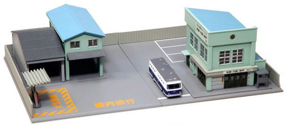 ● プロトタイプは事務所兼詰所に簡単な整備工場、給油設備を持った小規模な営業所。昭和40年代の頃を参考にしてますので、ディーゼル車導入当時の都市部大手バス会社や、最近の地方バス会社の低床式最新タイプまでさまざまな街の風景にマッチします。