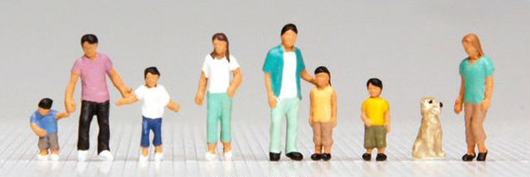 在来の鉄道シーン向きの「Nゲージ人形」とは異なり、街中の「日本的な生活観のある」人々を中心にモデル化しました。あなたの街にもこれらの「新しい住人達」をぜひ加えてください。